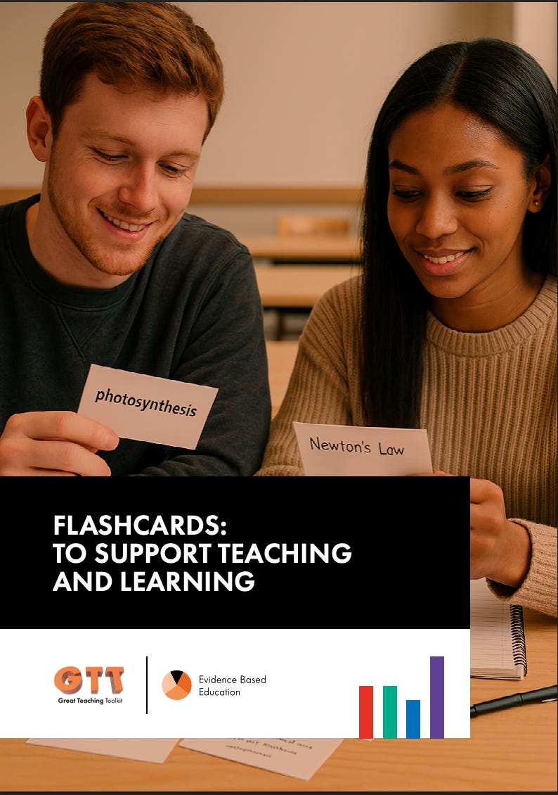 Vague or overloaded cards invite misconceptions and false confidence. This aligns closely with the evidence base. Retrieval is not an optional extra and should be part of effective teaching.