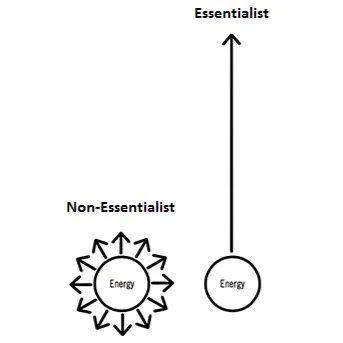 Greg McKeown nails it in Essentialism. His diagram (below) says it all – focus your energy and you move somewhere; spread it thin and you just look busy.